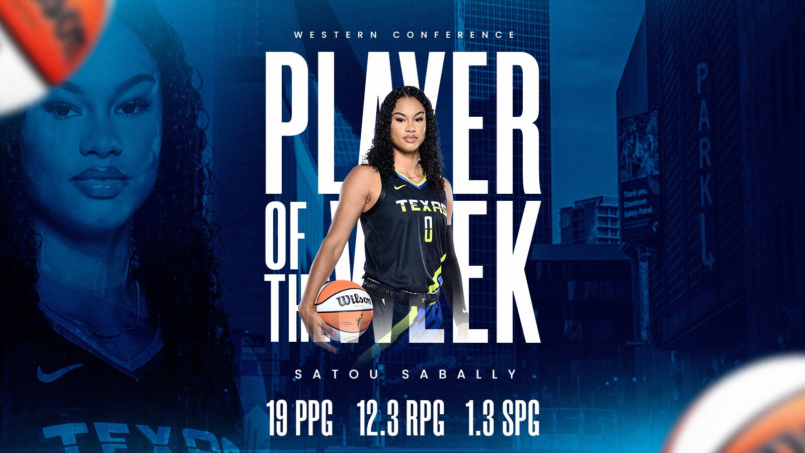 Sabally, over the course of 13 games in 2023, has averaged 19.5 points, which is the eighth-best average in the WNBA, while her average of 10.5 rebounds is the second best mark in the WNBA. From May 30 to June 14, Sabally recorded seven straight double-doubles and become the first player in franchise history and eighth in WNBA history to record seven straight double-doubles in a single season. For her efforts this season, Sabally was named the Western Conference Player of the Week for the first time in her career on June 12.